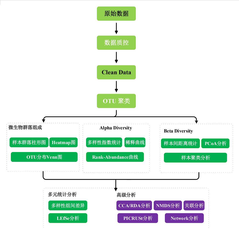 6.基于OTU豐度表及不同分類層級的豐度表,進(jìn)行Alpha多樣性和Beta多樣性分析;